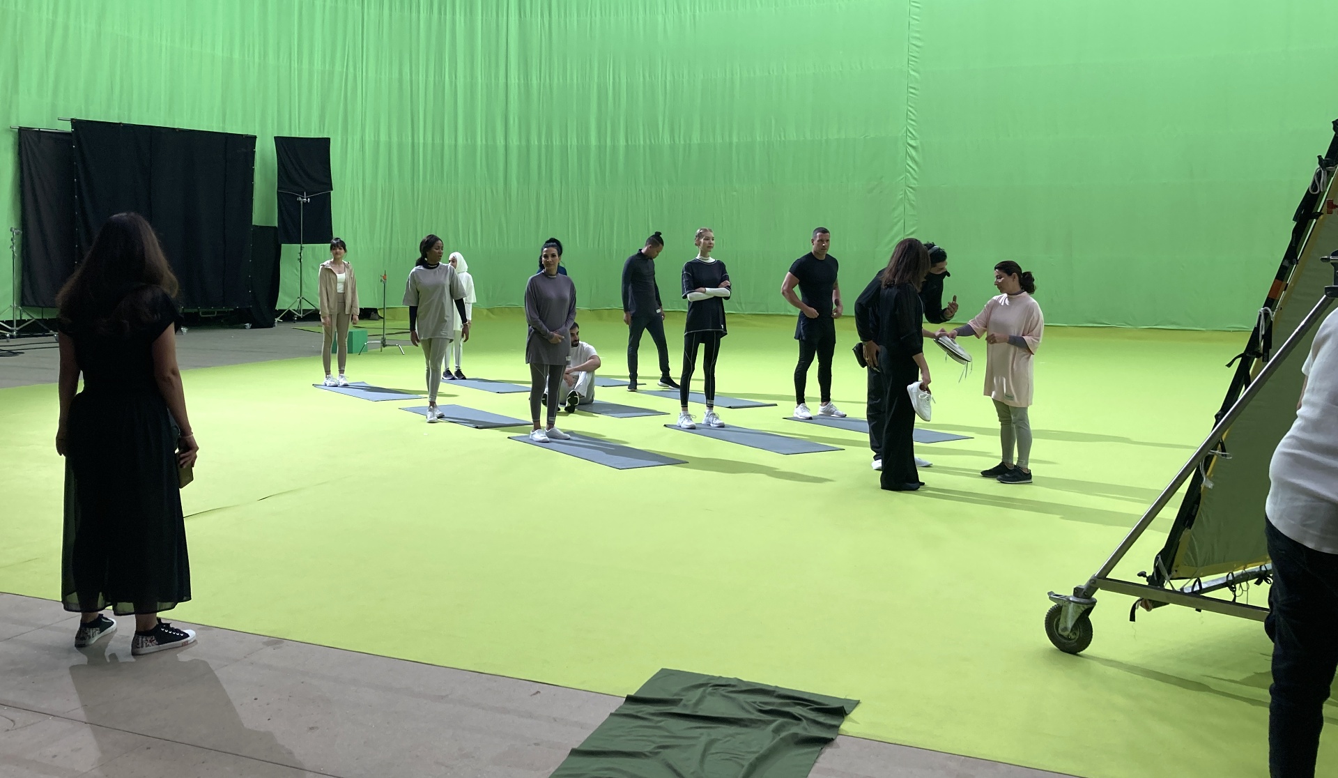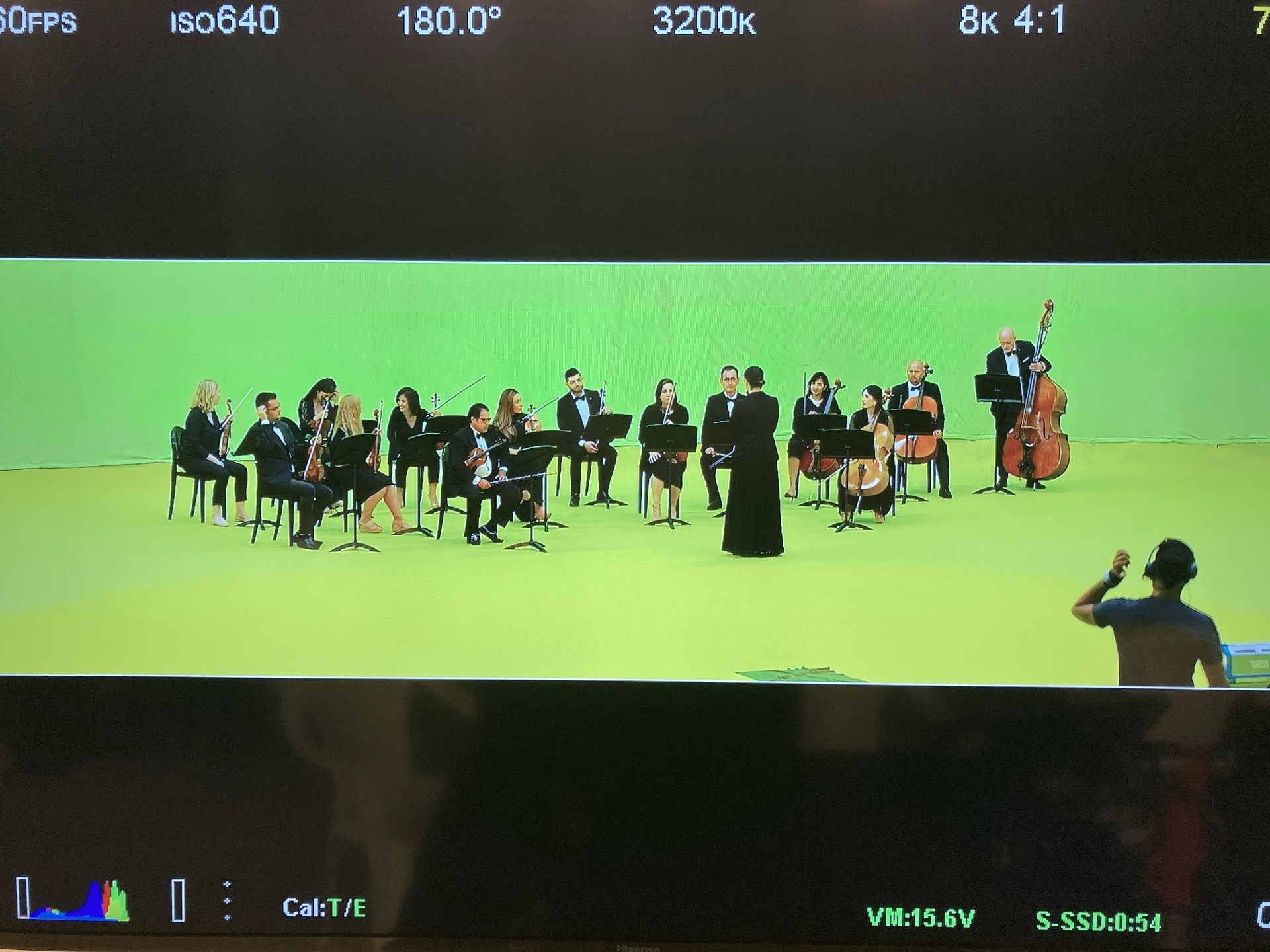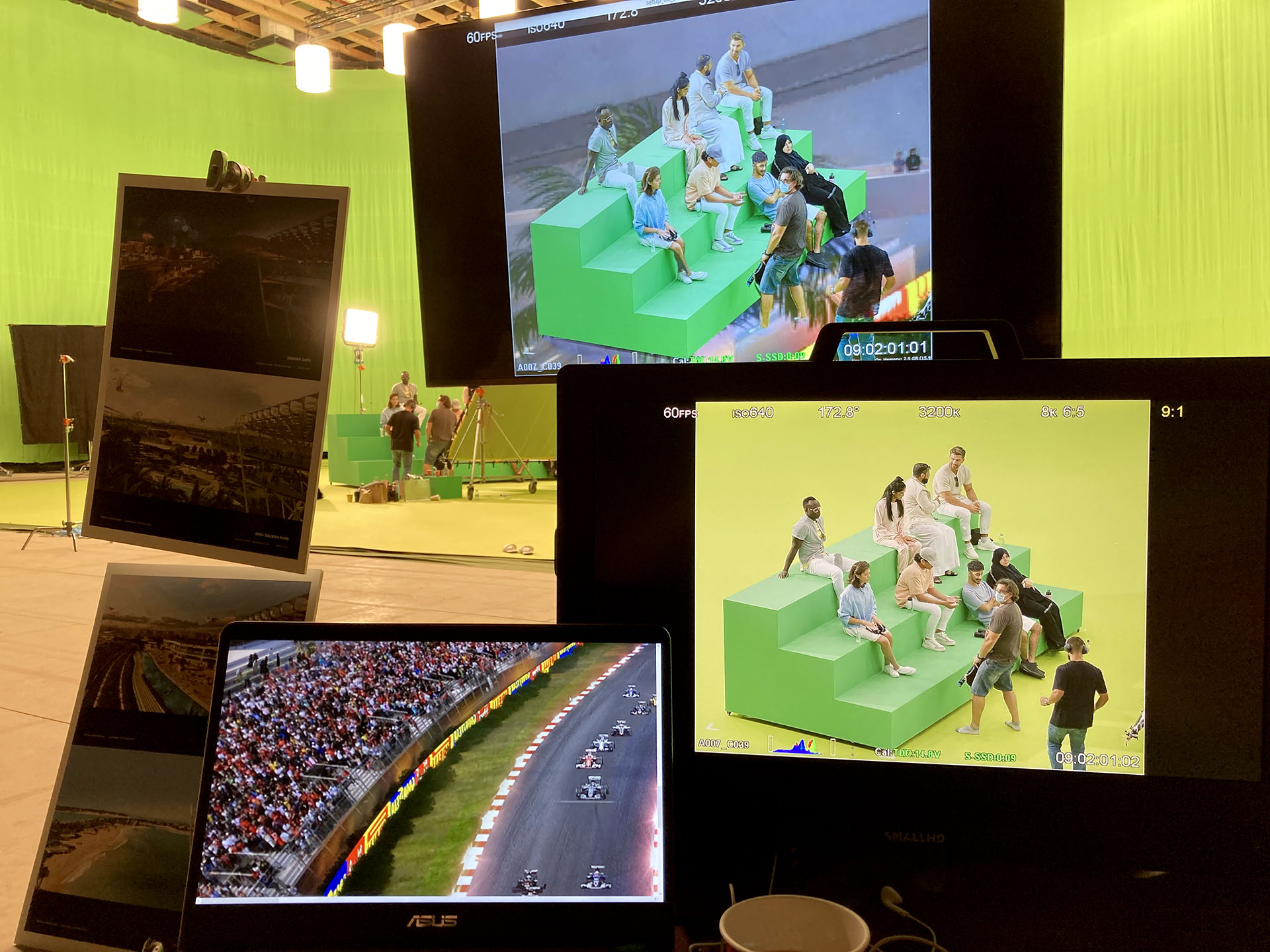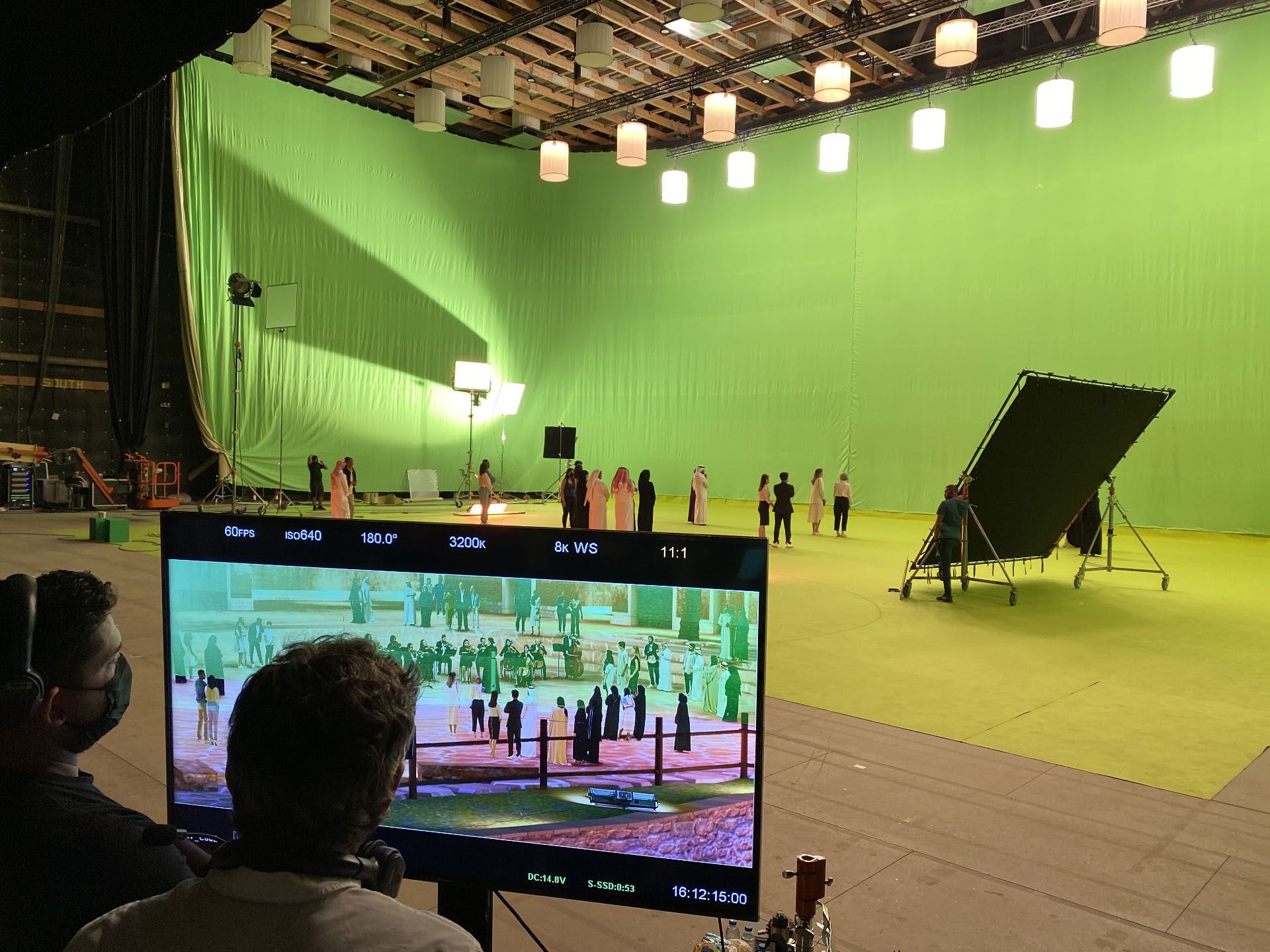La mejor forma de integrar personas en un entrono 3D de 12K sigue siendo rodándolas con fondo chroma. Esa fue la decisión que BMA tomó para producir la parte de imagen real de este gigantesco videomapping de más de 500 m2. El rodaje se realizó en uno de los mas grandes estudios insonorizados de Dubai y para personificar a los personajes se recurrió a cerca de 200 actores de diferentes nacionalidades y edades.