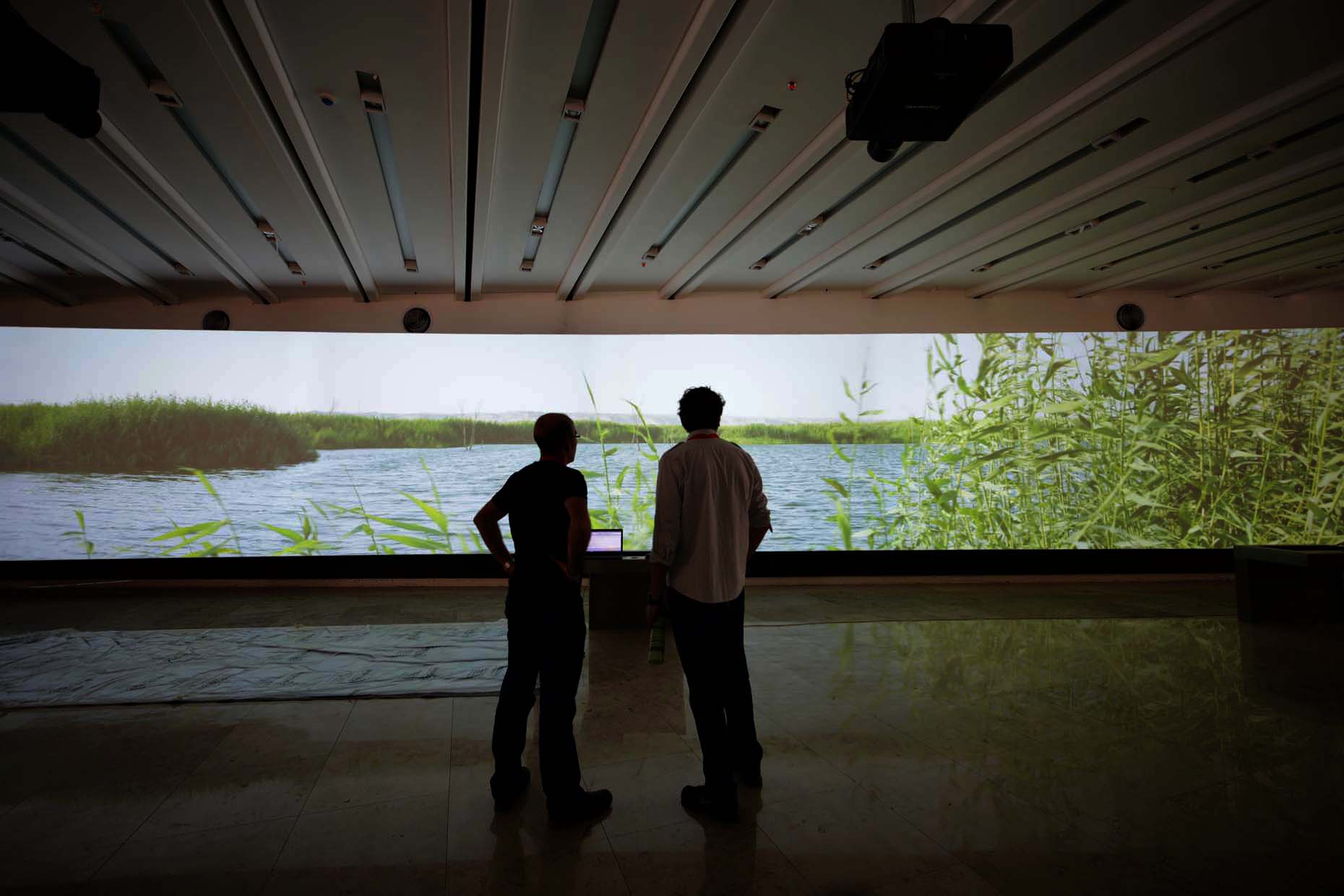 Las instalaciones audiovisuales de gran formato presiden la sala, alternando la riqueza audiovisual con la interactiva, para profundizar en el conocimiento de un país. Maquetas con la orografía de Kuwait se combinan con un videomapping, que nos revela los mejores secretos naturales del país, con imágenes tomadas durante un rodaje que supuso todo un desafío de producción.