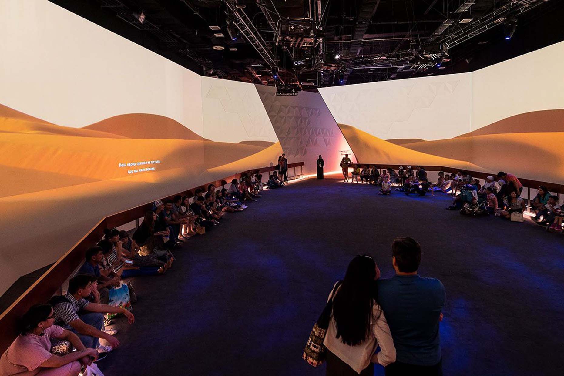 Durante la Exposición de Astana (Kazajistán) en 2017, el Pabellón de Emiratos Árabes brilla con luz propia gracias a un despliegue audiovisual innovador al servicio de la intensa dedicación del país al sector de las energías renovables.